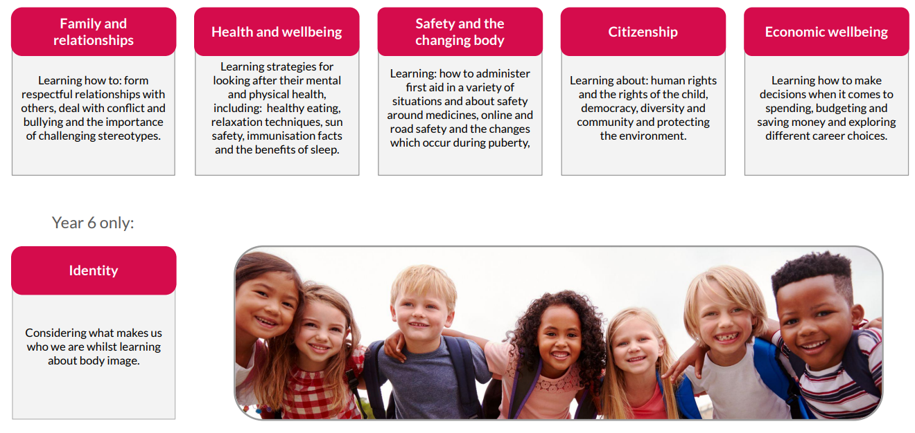 Each area is revisited to allow children to build on prior learning. The lessons also provide a progressive programme. The lessons are based upon the statutory requirements for Relationships and Health education, but where our lessons go beyond these requirements (primarily in the Citizenship and Economic wellbeing areas) they refer to the PSHE Association Programme of Study which is recommended by the DfE. Sex education has been included in line with the DfE recommendations and is covered in Year 6 of our scheme. The scheme supports the requirements of the Equality Act through direct teaching, for example learning about different families, the negative effect of stereotypes and celebrating differences, in addition to the inclusion of diverse teaching resources throughout the lessons.