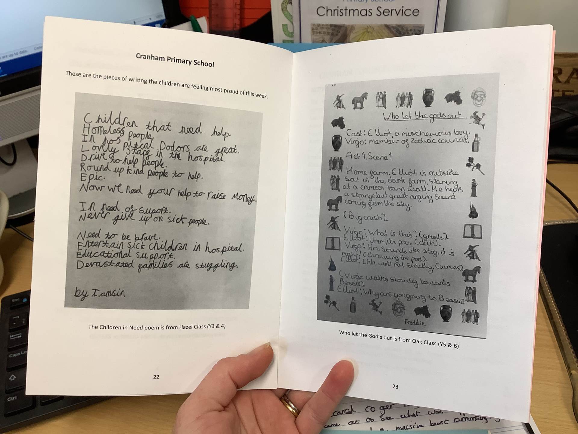Every month, a piece of writing is chosen from each class to publish in our local village magazine. It feels very exciting to be officially published authors and to have our creations distributed to so many readers!