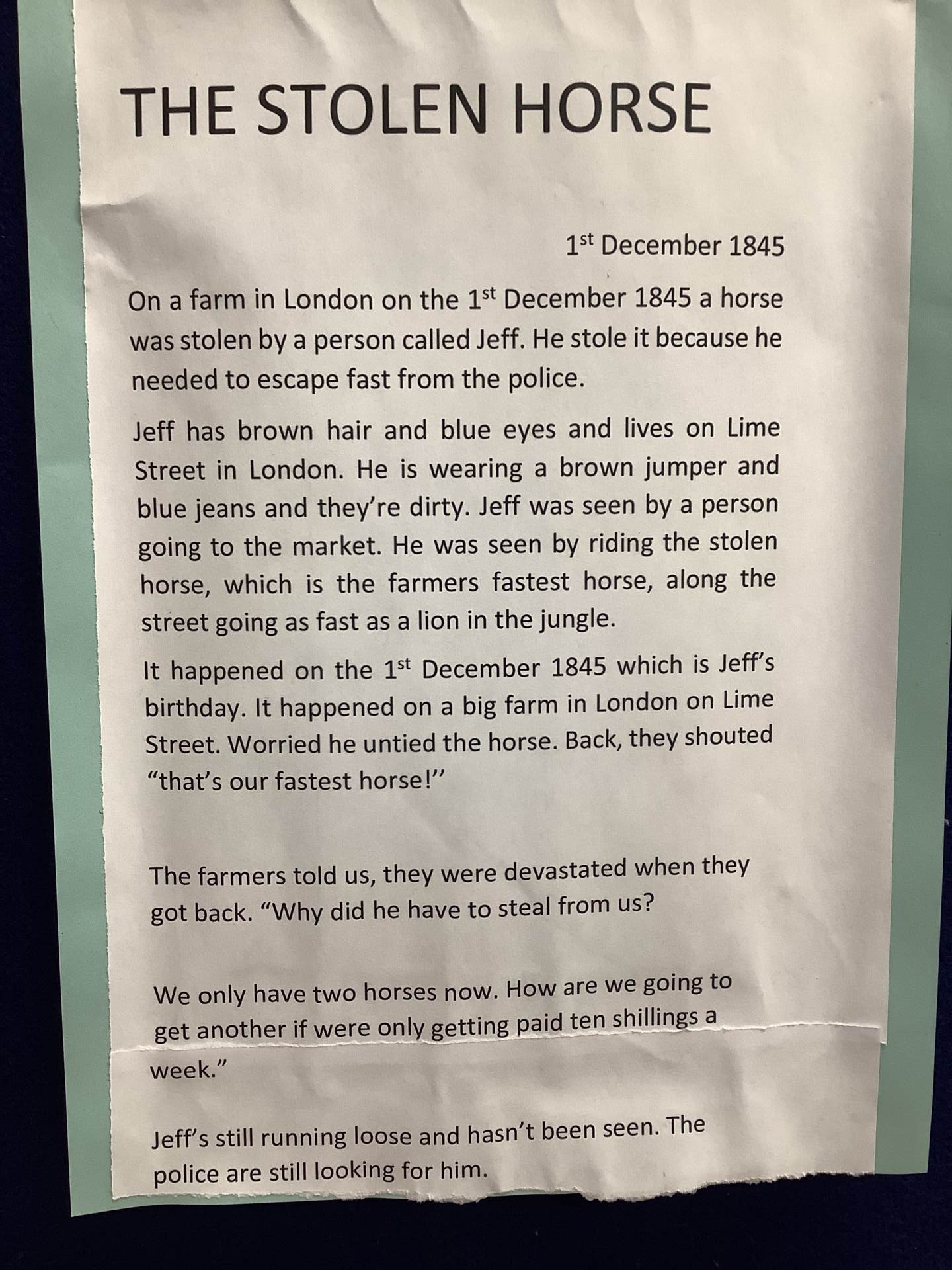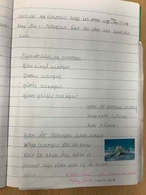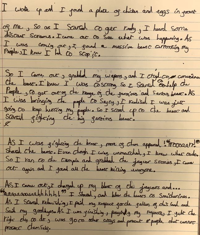 Every month, a piece of writing is chosen from each class to publish in our local village magazine. It feels very exciting to be officially published authors and to have our creations distributed to so many readers!